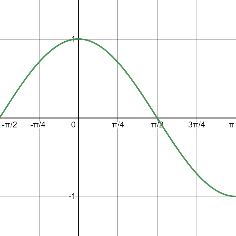 \(\displaystyle \int_{-\pi/4}^{\pi/2} \left(\cos x\right) \, dx \)